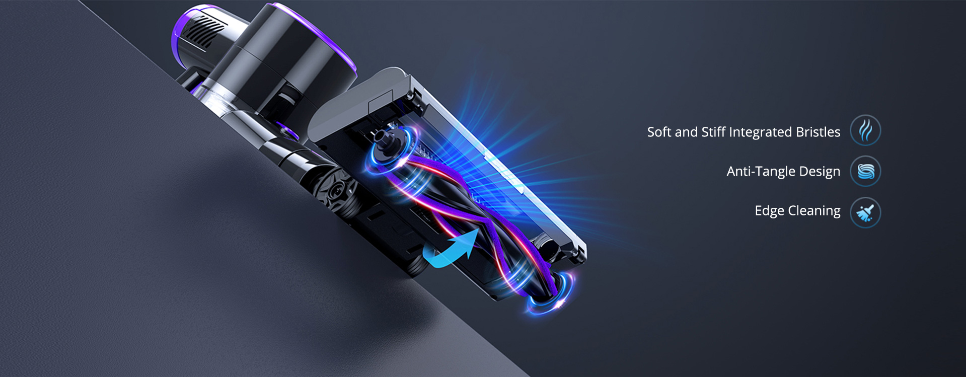 Das benutzerfreundliche LED-Display bietet Echtzeit-Statusaktualisierungen des Staubsaugers. Sein Anti-Tangle-Design entfernt effektiv lange Haare und Schmutz von Teppichen und Hartböden und sorgt so jedes Mal für eine gründliche Reinigung