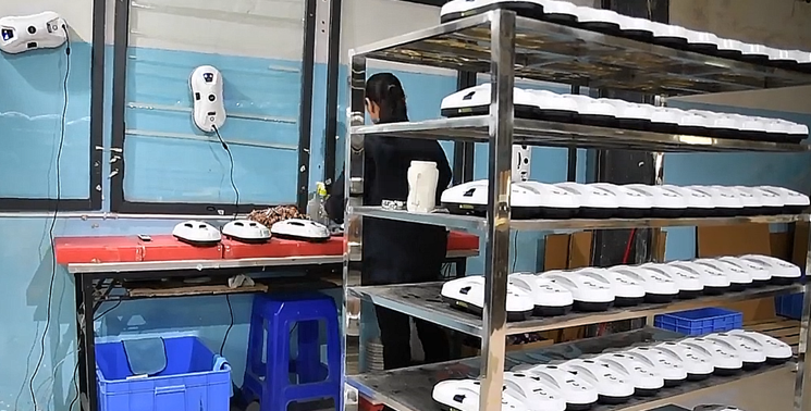 Jeder fertige Fensterputzroboter wird sorgfältig in seine individuelle Verpackung verpackt und ist versandbereit.
